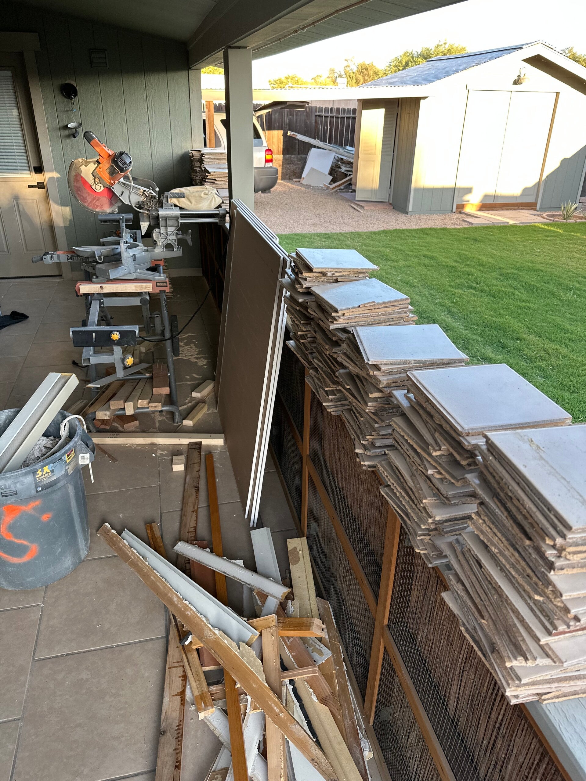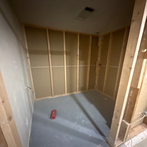 wall of bathroom moved in prep for primary bathroom remodel with wetroom